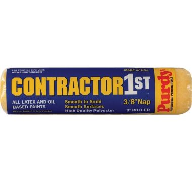 TTD 33.50PURDY CONTRACTOR 1ST 688092 PAINT ROLLER COVER, 3/8 IN THICK NAP, 9 IN L, MEDIUM-DENSITY POLYESTER COVERIncludes two 9 in x 3/8 in Contractor 1st™ roller covers, a 9 in heavy-duty 5-wire frame and a metal paint tray. Great for any interior or exterior project at a great value.